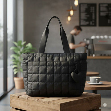 Sold out Nollia Everyday Black Quilted Tote Bag with Heart Charm