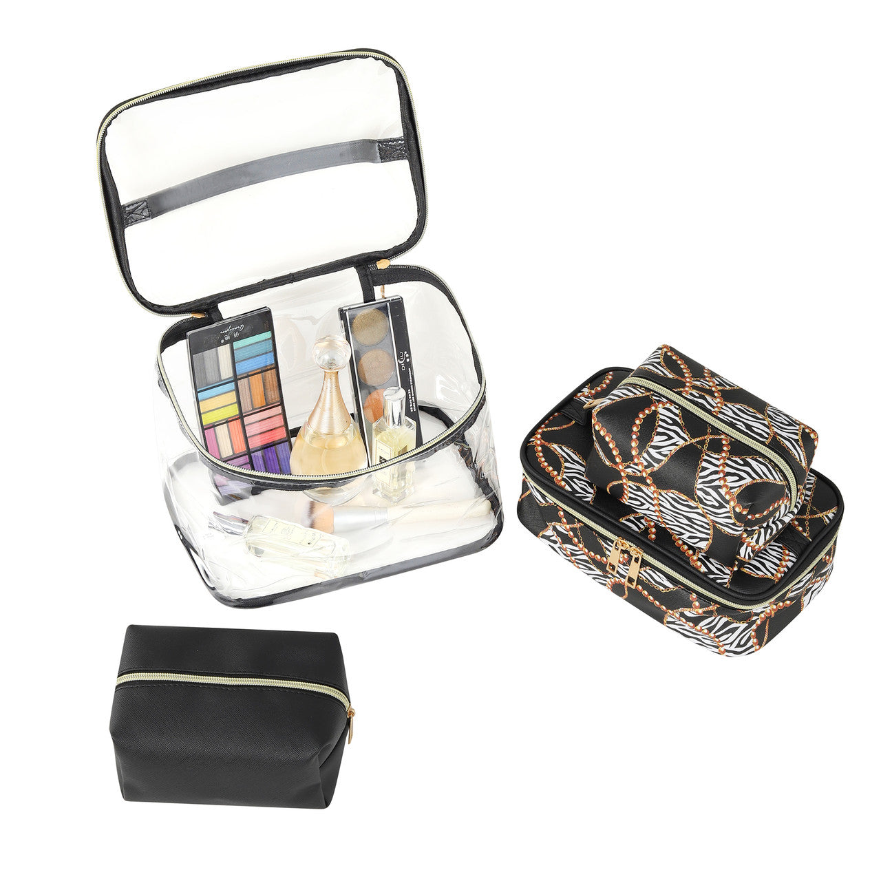 Add a bold, timeless accent to any beauty collection with this 4-piece Leopard Print Cosmetic Set. Featuring a classic leopard pattern, this coordinated set combines fashion-forward style with practical organization for cosmetics, toiletries, and everyday essentials.