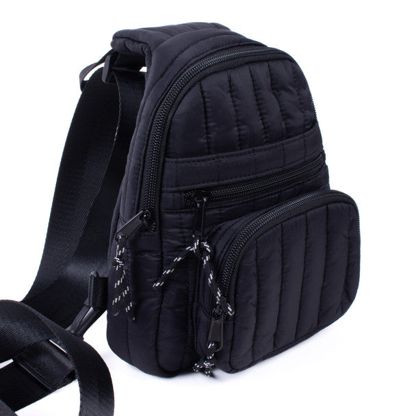 Stay active in style with our Quilted Nylon Sling Bag. Designed for the modern woman on the go, this sporty bag offers a sleek black look with a quilted texture, multiple compartments, and a comfortable adjustable strap. Perfect for gym, errands, or casual outings.
