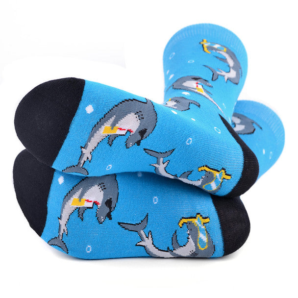 Chill out in tropical style with the Parquet Men’s Vacation Shark Crew Socks. These blue socks feature a fun, laid-back shark design wearing sunglasses and enjoying vacation vibes—ideal for beach lovers and sock collectors.