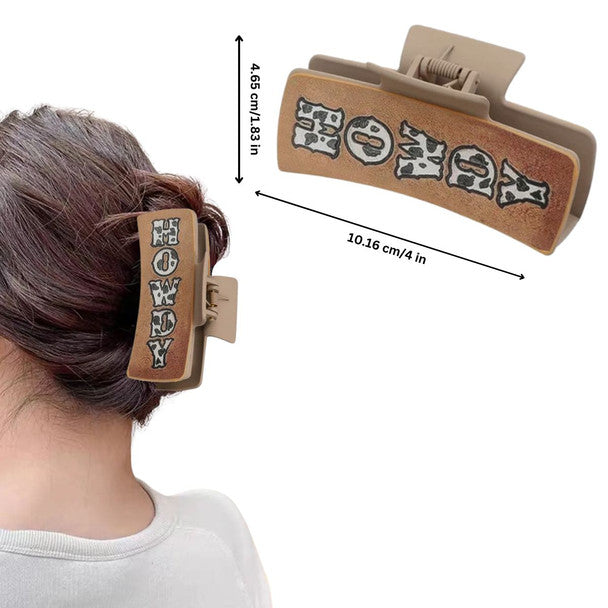 Add some southwestern charm to your hair routine with the Nollia Vegan Leather “Howdy” Hair Claw Clip. Designed with bold Western-style lettering and a rustic finish, this fun clip blends style and function. Crafted from durable acrylic and eco-friendly vegan leather, it offers a secure grip for all-day wear. Whether you're heading to a festival, running errands, or just channeling a bit of country flair, this clip brings personality and practicality to any look.