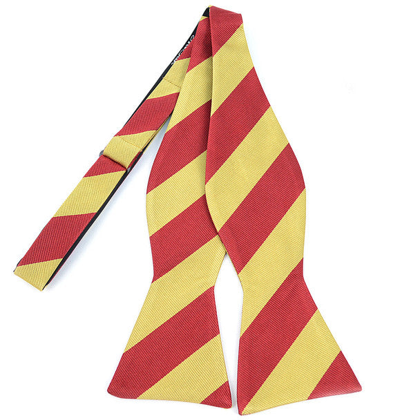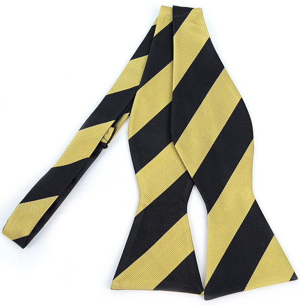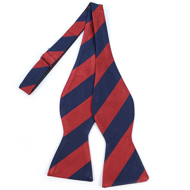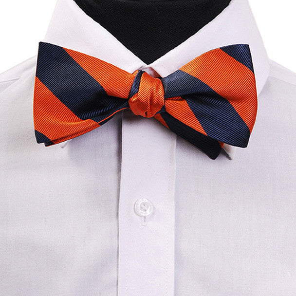 Show your school pride in style with the Umo Lorenzo Men's Silk Woven Freestyle College Bow Tie. Made from 100% silk, this self-tie bow tie features a timeless striped pattern and is available in 26 bold collegiate colorways. Designed to fit most neck sizes, it's perfect for alumni events, gameday celebrations, or formal occasions where team spirit meets sophistication.