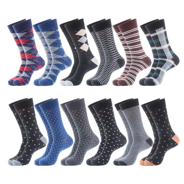✅ Includes: 12 pairs of assorted men’s dress socks in modern patterns