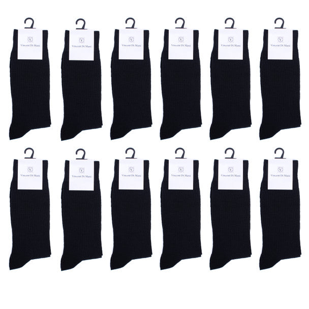 Stock up on this essential staple with the Vincent Di Mani Men’s 12-Pair Solid Black Dress Socks, perfect for business, formal, or everyday wear. Each pair is crafted from a premium polyester blend that combines softness, durability, and all-day comfort. Designed in a classic solid black, these versatile dress socks are an ideal choice for professionals, retailers, or anyone looking to add reliable basics to their wardrobe. Each pair is individually packaged with a retail hanger, making them display-ready for stores, boutiques, or bulk resale.